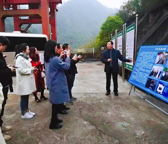 在雨城区沙坪电站,市水利局副局长张勇介绍了《雅安市青衣江流域水环境保护条例》贯彻执行情况,特别是全市各电站生态流量下泄工作推进情况。