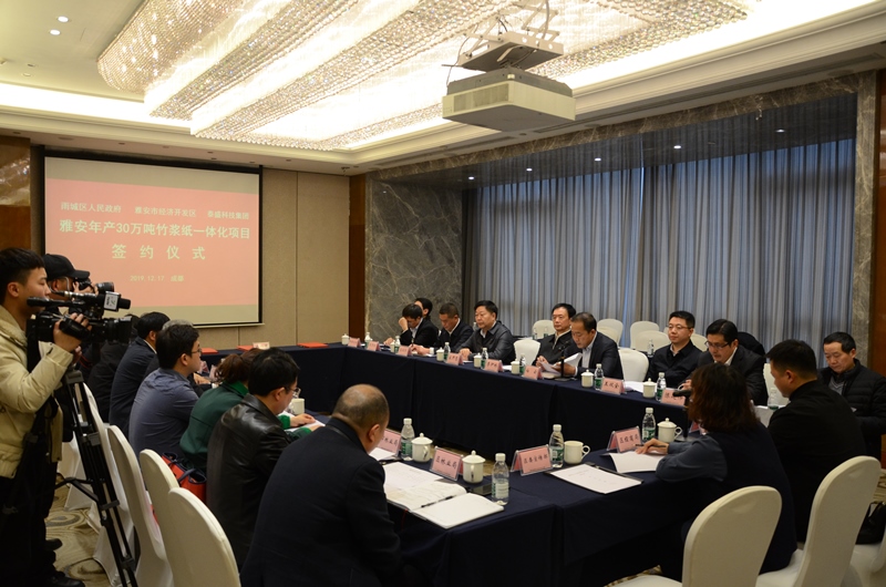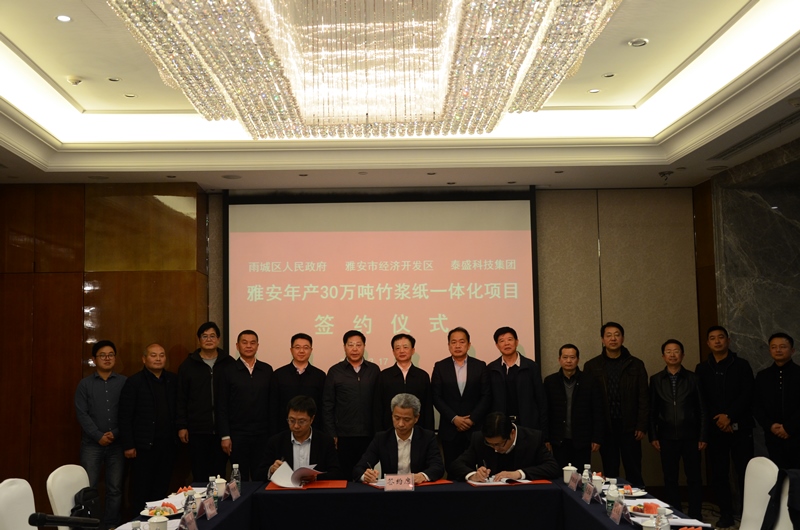 12月17日,雨城区政府、经开区管委会和泰盛科技(集团)股份有限公司在蓉签署年产30万吨竹浆纸一体化项目投资协议,标志着该项目正式落户雅安,为推进竹产业高质量发展注入强劲动力。