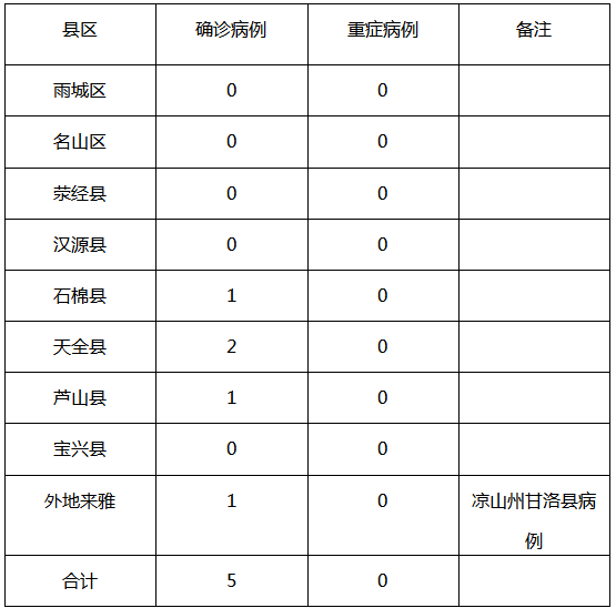 雅安市新型冠状病毒感染的肺炎疫情分布情况