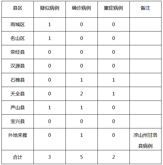 雅安市新型冠状病毒感染的肺炎疫情分布情况