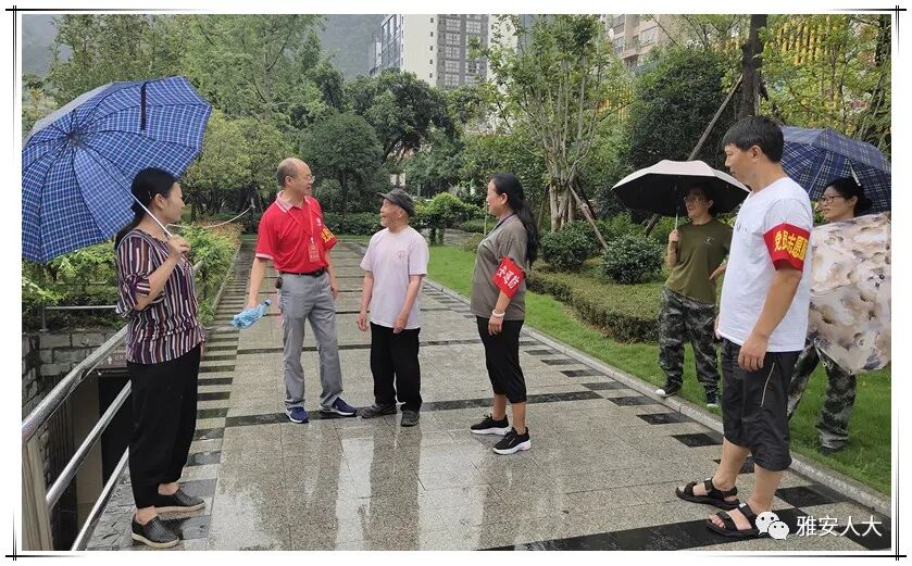 ▲8月12日,石棉县人大机关干部到社区双报到参与防汛工作劝导群众远离危险地段