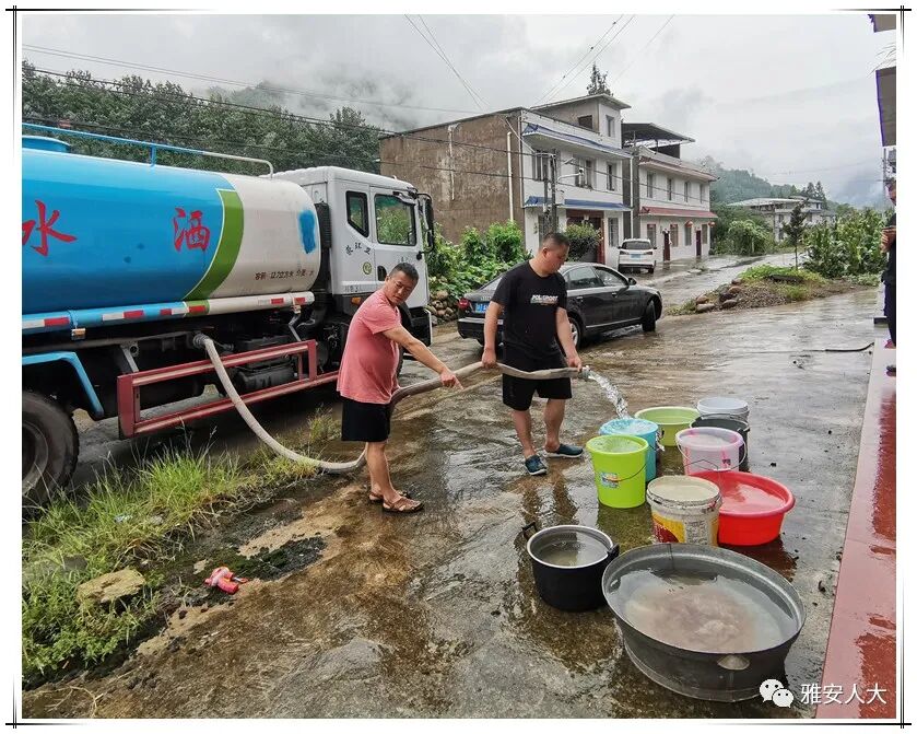 ▲8月11日,荥经县新添镇人大主席团组织人大代表为受灾群众送水
