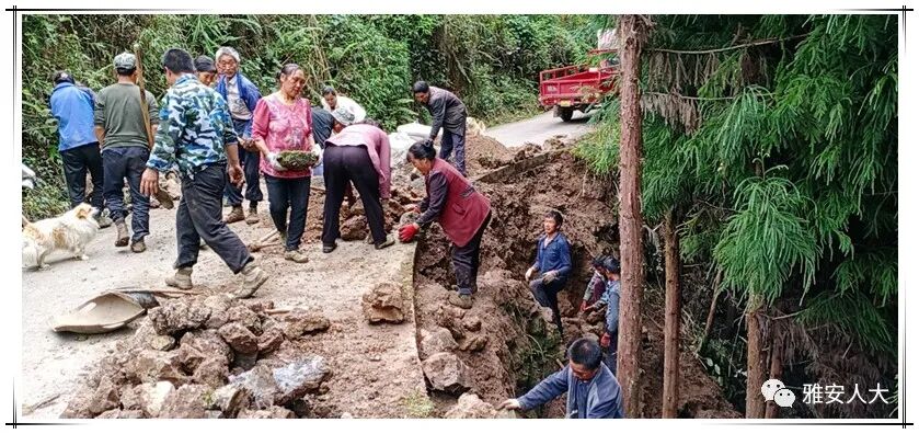 ▲8月11日,天全县仁义镇人大主席团组织人大代表疏通塌方路段