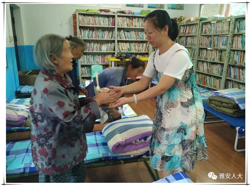 ▲8月11日,雨城区八步镇人大主席团为安置点村民送食物