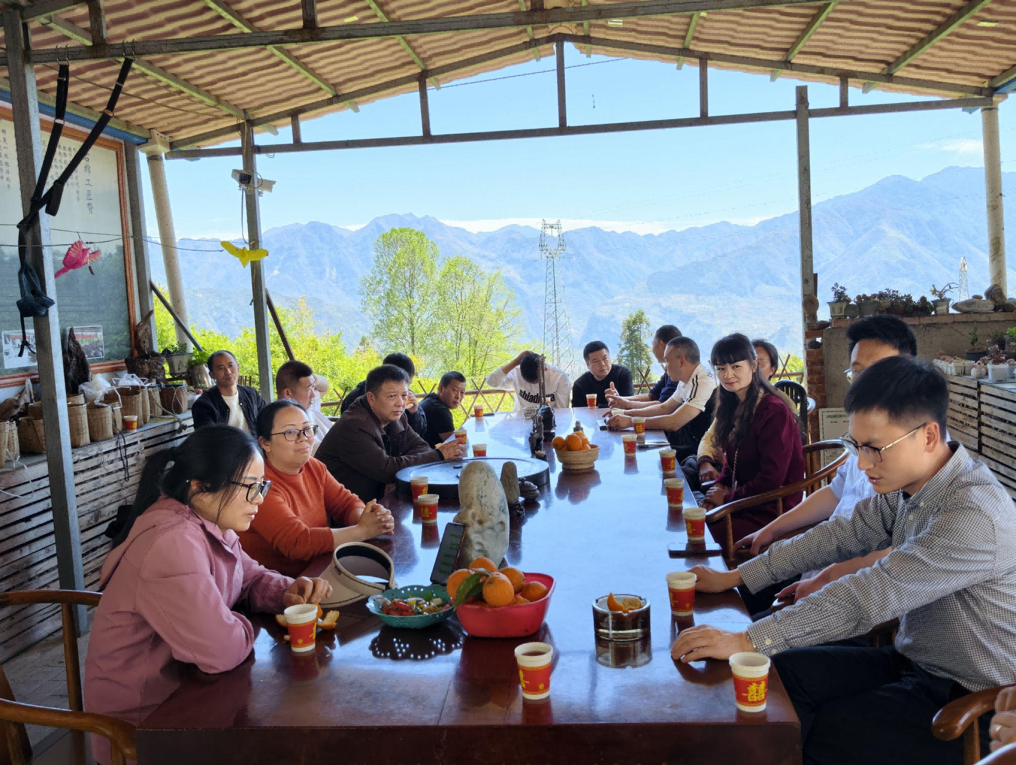 在美罗镇老鹰茶种植基地交流探讨茶树培育、茶叶加工和销售